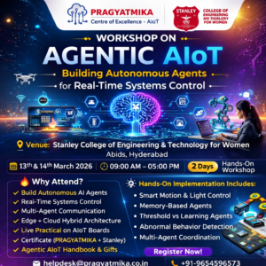 🚀 MASTER AGENTIC AIoT IN JUST 2 DAYS 🚀 Build Autonomous AI Agents for Real-Time Systems Control 📍 Hyderabad | 13–14 March 2026🏫 Stanley College of Engineering & Technology for Women, Abids, Hyderabad. 🎓 Certificate from Centre of Excellence - AIoT , Stanley College of…
